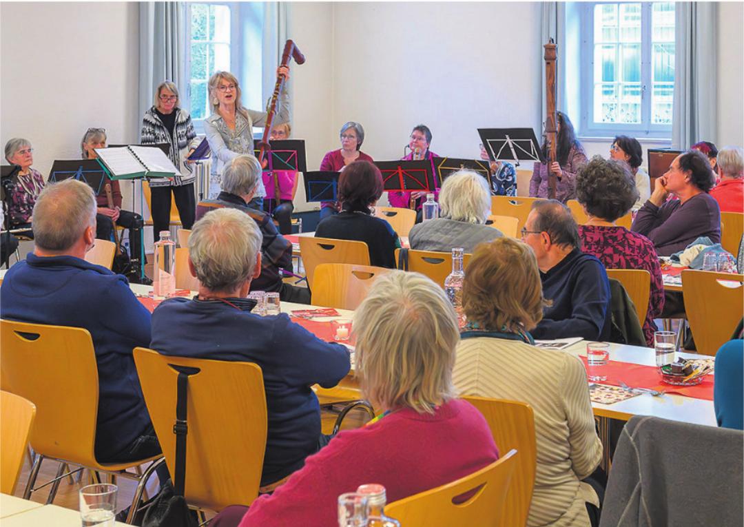 Die reformierte Kirche in Rheinfelden lud zur alljährlichen musikalischen Seniorenweihnachtsfeier ein. Wie auch letztes Jahr waren die Flötenensembles «Flauto Dolce» und «Pro Senectute» unter der Leitung von Verena Michel zu Gast. Zu Beginn erzählte Michel etwas über die Geschichte und Bauart der verschiedenen sehr kleinen bis sehr grossen Flöten. Damit die Besucherinnen und Besucher den klangvollen Flötentönen noch besser Gehör schenken konnten, wurde jedes Lied zunächst in voller Länge von den Ensembles gespielt, bevor alle die auf dem Programm stehenden weihnachtlichen Lieder mitsangen. Es gab viel zu sehen, hören und zu singen. Begleitet wurden die Ensembles von Nina Haugen am Klavier. Auch eine Andacht und eine Weihnachtsgeschichte, gelesen von Pfarrer Klaus-Christian Hirte, sorgten für vorweihnachtliche Stimmung. Der gut besuchte Nachmittag mit schönen Klängen, guten Gesprächen und einem feinen Zvieri fand viel Anklang und bis zuletzt wurde gesungen und musiziert, was allen viel Freude bereitete. (mgt)