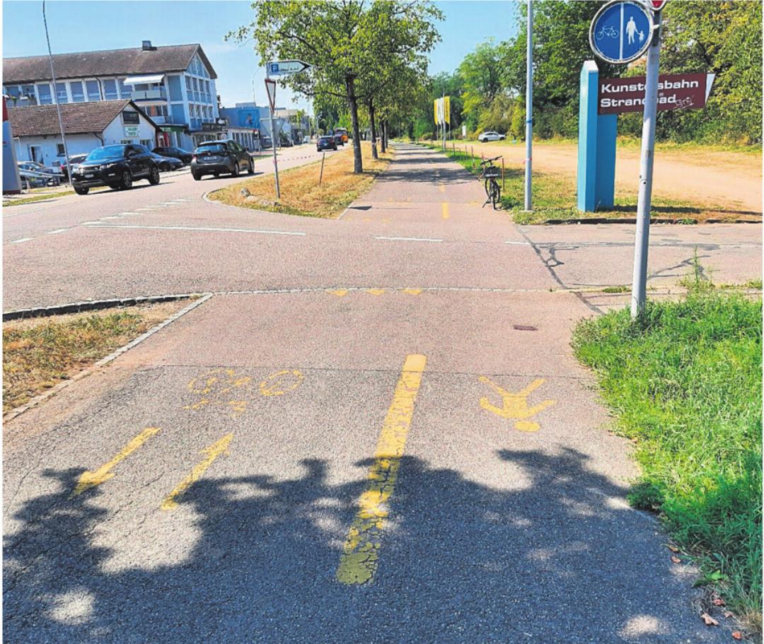 Der Rad- und Fussweg entlang der Baslerstrasse in Rheinfelden w ird zw ischen den Zufahrten zur Kunsteisbahn und zum Strandbad und zur A bwasserreinigungsanlage (AR A) verbreitert. Ziel des Projekts ist es, die Sicherheit für Velofahrende und Fussgängerinnen und Fussgänger zu erhöhen. Künftig sollen diese beiden Verkehrsteilnehmenden vortrittsberechtig t geführt werden.