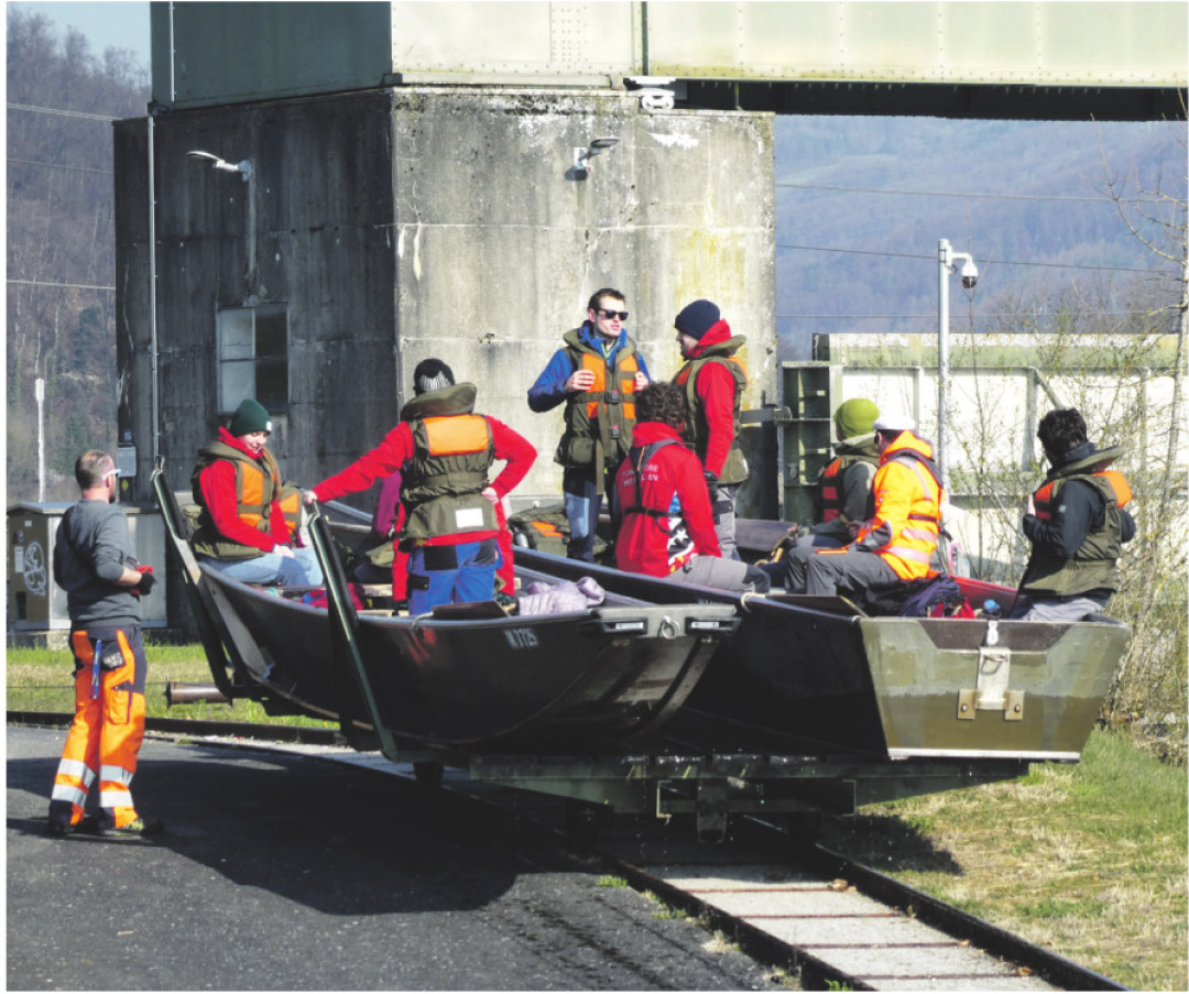 Wie jedes Jahr im März transportierten die Pontoniere ihre Boote vom Winterquartier im Zeughaus Brugg auf dem Wasserweg zum Vereinshaus nach Rheinfelden. Neunzehn Vereinsmitglieder nahmen an der rund 60 Kilometer langen Talfahrt teil, darunter sechs Jungpontoniere. Mit zwei Übersetzbooten und einem Weidling machten sich die Teilnehmenden frühmorgens bereit für die Fahrt.