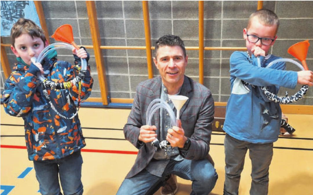 Nach der Eröffnung von «POWER-BRASS» –einem Blechbläserensemble bestehend aus Musikschülern – durften die Kinder in die Workshops strömen. Sie hatten die Möglichkeit, eigene Flaschenflöten zu bauen, ein Oboen-Rohr herzustellen oder eine Schlauchtrompete zu kreieren. Einfache Materialien verwandelten sich in beeindruckende Musikinstrumente, und die Kinder waren begeistert von ihrem eigenen Schaffensprozess. Neben den Workshops gab es spannende Wettbewerbe. Bei einem durften die Kinder schätzen, wie viel Wasser in ein Euphonium passt oder wie lange ein Kornett ist, wenn man es aufrollen würde.