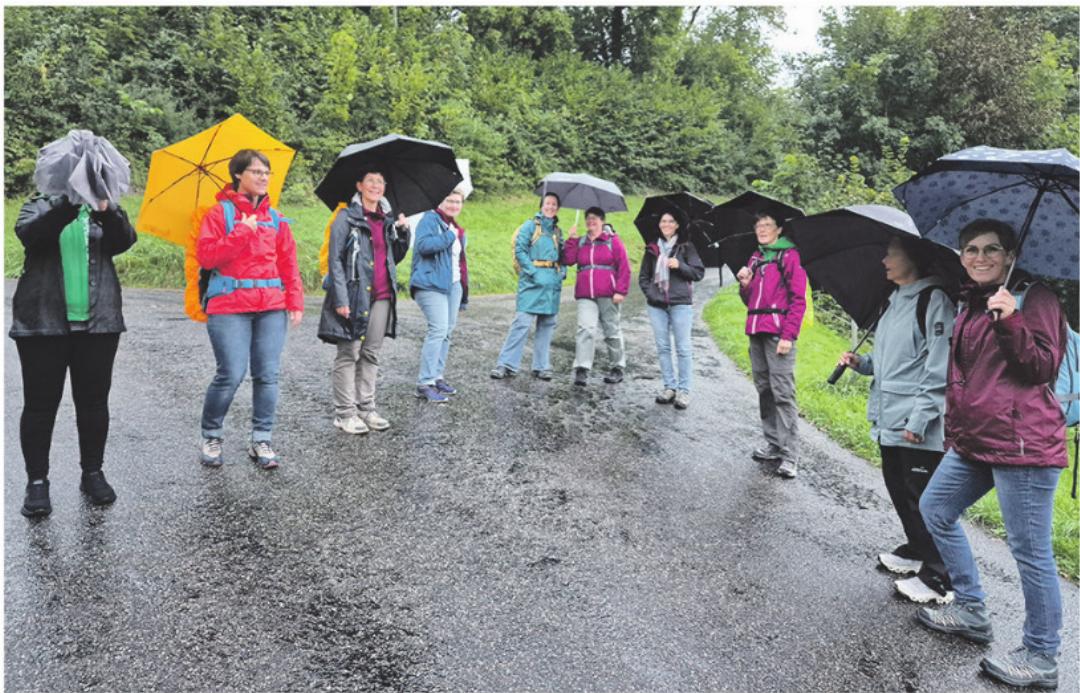 Ende September fand mit Start in Wölflinswil der alljährliche Suuserbummel des Frauenturnvereins Zeihen statt. Zu Fuss und mit Regenschirmen ausgerüstet, wanderten die aufgestellten Frauen nach Oberhof. Unterwegs wurde viel erzählt, gelacht und die herrliche Natur genossen, auch wenn sie sich von ihrer nassen Seite zeigte. Beim Benkenhof der Familie Bircher angekommen, wartete ein feines Essen auf die Wanderinnen. Natürlich durfte auch der Suuser nicht fehlen. Herzlichen Dank den Organisatorinnen für diesen schönen Abend, bei dem einmal mehr deutlich wurde: Es braucht nicht immer Sonnenschein, um gemeinsam schöne Momente zu erleben! (mgt)