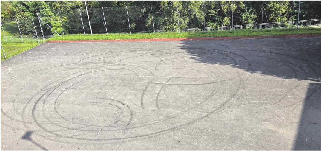 Der Gemeindeammann von Obermumpf ist verärgert. «Der ganze Platz ist verunstaltet, das müssen wir jetzt alles wieder beseitigen lassen», erklärt Benedikt Gürtler. Am vergangenen Wochenende ist eine unbekannte Täterschaft mit einem Fahrzeug auf den Teerplatz bei der Schulanlage gelangt, um dort ausgiebig zu driften. Viele schwarze Pneuspuren zeugen vom Vandalenakt. «Wir sind uns nicht ganz sicher, ob es sich beim Fahrzeug um einen Töff oder ein Auto gehandelt hat. Ich gehe aber davon aus, dass es ein Auto war. Wahrscheinlich ist der Pneu beim Driften beschädigt worden, denn die Drifts führten auch über eine zwar eingelassene, aber etwas vorstehende Röhre», so Gürtler. Normalerweise ist die Zufahrt zum Platz mit einer Schranke versperrt. Weil aber der Turnverein mit den Vorbereitungen für den nächsten Turnerabend beschäftigt war, blieb die Schranke am Wochenende offen.