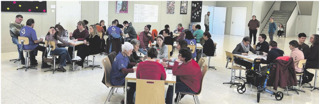 Gross und Klein, Jung und Alt, die ganze Insieme-Familie traf sich kürzlich im Bezirksschulhaus Steinli in Möhlin zum Lotto spielen. Alle warteten jeweils gespannt auf die Zahl, die die Lottotrommel ausspuken würde. Auf den Spiel karten standen nicht nur die Zahlen, sondern auch je ein Bild für diejenigen ohne Zahlenkenntnisse. Neben den «Hauptgewinnern» gab es am Schluss auch noch für alle, die leer ausgegangen waren, einen tollen Trostpreis vom reich gedeckten Gabentisch, der liebevoll vom «Fambiki»-Leiterteam zusammengestellt wurde. Zwischen den Durchgängen wurde zu rassiger Musik getanzt, damit die Beine und Arme auch beschäftigt waren. In der grossen Pause gab es Kaffee und Kuchen. Ein toller Anlass, der nächstes Jahr unbedingt wieder stattfinden muss, so die Rückmeldungen von allen Teilnehmern, die mit leuchtenden Augen nach Hause zurückkehrten. (mgt)