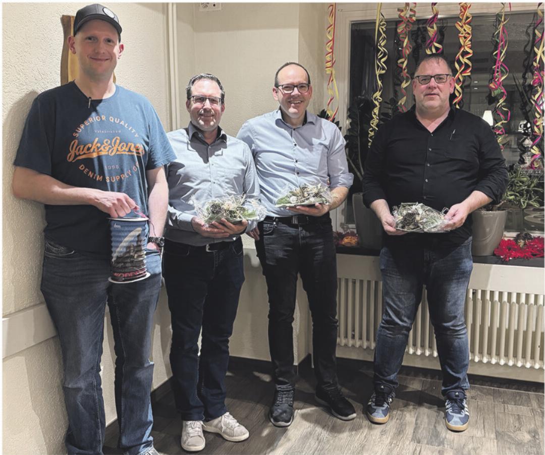 An der Generalversammlung der Musikgesellschaft Sulz wurden auch in diesem Jahr wiederum diverse Mitglieder für besondere Verdienste geehrt. So waren es Henrike Plumhof, Phillipp Kaufmann, Röbi Käser und Martin Ackle, welche für den f leissigen Probebesuch geehrt wurden. Vor 25 Jahren wurde Gabriel Rüede in die Musikgesellschaft Sulz aufgenommen. Seither ist der heutige Lokführer als aktiver Schlagzeuger bei den Sulzer Musizierenden anzutreffen. Für diesen Verdienst wurde er in die Gilde der Ehrenmitglieder der MG Sulz aufgenommen. Für 25 Jahre aktives Musizieren wird er Aargauer Kantonal Veteran. Gratulationen für 30 Jahre aktives Musizieren, du rften Stephan Schraner und Florian Weiss entgegennehmen. Ludwig Dünner wurde für 35 Jahre aktives Musizieren geehrt und er steigt somit zum Eidgenössischen Veteranen auf. Gabriel Rüede und Ludwig Dünner werden anlässlich des Kantonalen Musiktages im Jahre 2027 die Veteranenabzeichen übereicht.