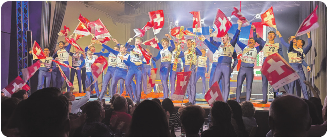 Und wenn es dunkel wird über der «Strihe-Alp» und die Helden der Nacht mit ihren Pistenbullys für perfekte Pisten sorgen, stürzen sich die Gäste ins Après-Ski-Getümmel in der «Rudel-Hütte». Die verdankt ihren ausgezeichneten Ruf nicht allein der guten Stimmung, sie überzeugt auch durch eine ausgezeichnete Küche und bestens ausgebildetes Service-Personal. Und je später der Abend, umso lauter wird gesungen: «Hurra, das ganze Dorf ist da!» Für die Sicherheit der Wintersportler sorgt derweil ein Lawinen-Sprengtrupp. Die erste Strihe-Alp-Abfahrt, wen wundert’s, wird von Marco Odermatt gewonnen. Äusserst aufschlussreich ist das spontane «Eseref»-Siegerinterview mit Franjo von Allmen nach dessen Slalomsieg.