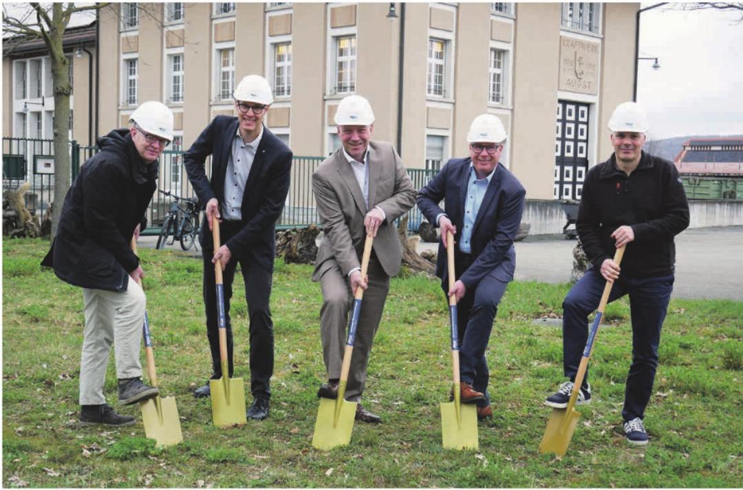 Am Montagnachmittag setzten David Gautschi (Leiter des Geschäftsbereichs Produktion), Raffael Schu biger (Präsident des Verwaltungsrats), Daniel Wernli (Leiter der Wärmeproduktion) zusammen mit dem Vizepräsidenten der Gemeinde Augst, Ralph Wächter, und dem Kraftwerks-Betriebsleiter Manuel Häfeli den symbolischen Spatenstich für das mehr als acht Millionen Franken teure Projekt. Damit treibt das Unternehmen den Ausbau der nachhaltigen und effizienten Wärmeversorgung voran und folgt seiner Strategie, bis 2040 Klimaneutralität zu erreichen. Bisher verfügt die AEW in Augst über ein Wärmenetz, das aus einer mit Öl und Pellets betriebenen Contracting-Anlage in Pratteln gespeist wird. Diese wird mit der Inbetriebnahme des neuen Wärmenetzes stillgelegt.